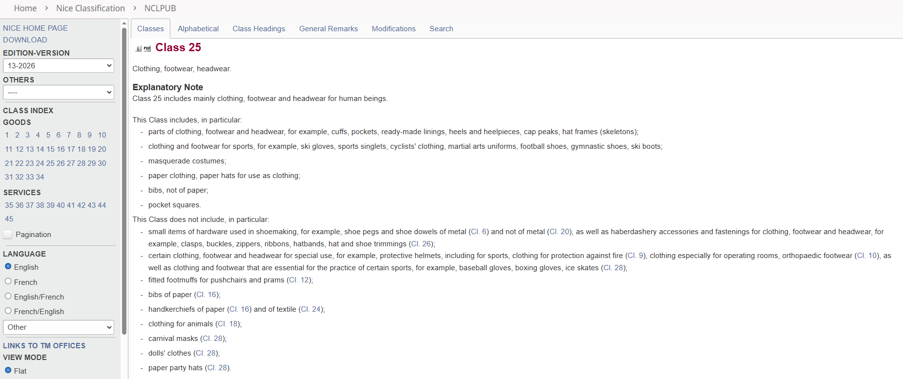 When registering a trademark, you must specify the class numbers as well as describe the specific goods and services within the relevant class. You can do so in two ways: